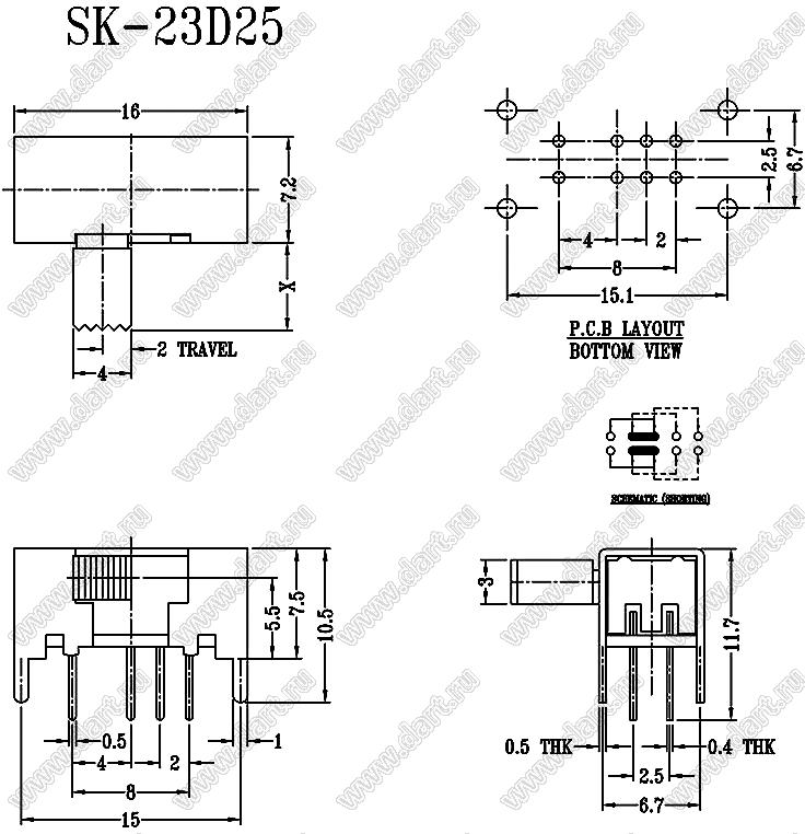 Каталог > Электронные компоненты, радиодетали > Переключатели, кнопки > Переключатели движковые (SLIDE) > Переключатели движковые (SLIDE) угловые > SK-23D25-G8