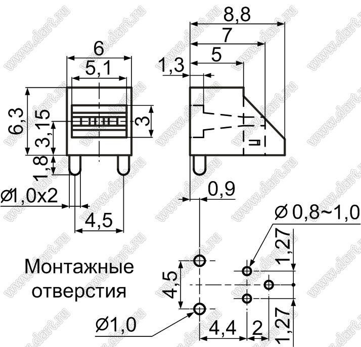Каталог > Фурнитура для электронных устройств > Держатели и изоляторы компонентов > Держатели светодиодов > Держатели светодиодов угловые на плату > прямоугольные > LEK-518