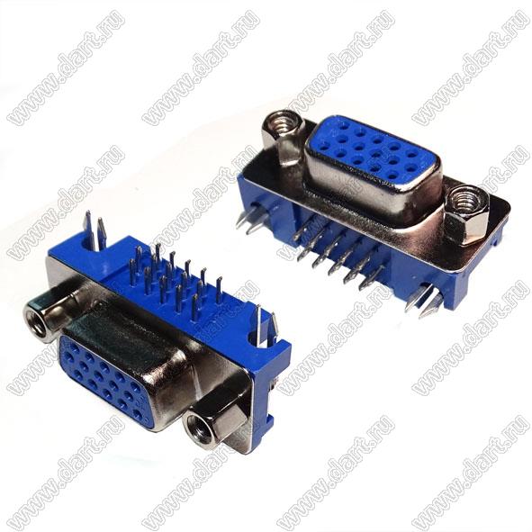 Каталог > Электронные компоненты, радиодетали > Разъёмы (соединители, переходники) > Разъемы D-SUB > DS1038-xxX (5510-xxX, DHR-xxX) серия: вилки и розетки D-SUB угловые «высокой плотности» для пайки в плату > DS1038-01-15F (DHR-15FS)