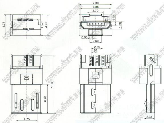 Каталог > Электронные компоненты, радиодетали > Разъёмы (соединители, переходники) > Разъемы USB > Разъемы микро USB > Разъемы микро USB 2.0 > HW-MC-5M-03