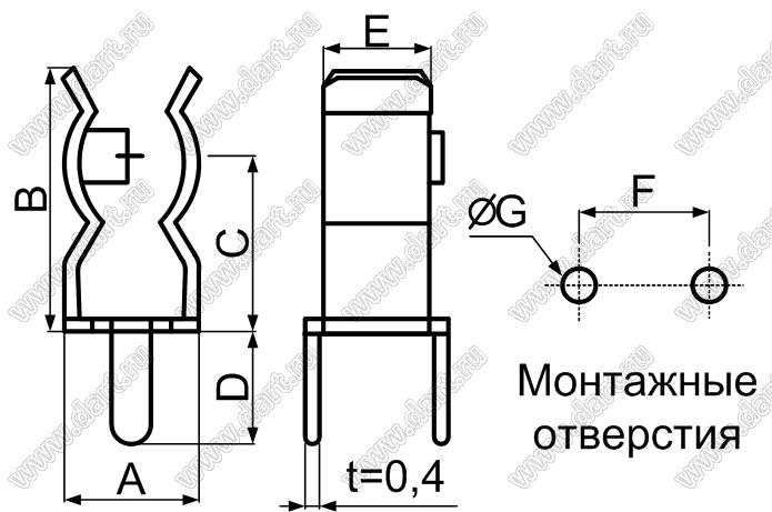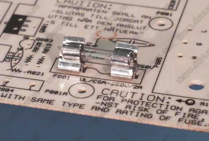 Каталог > Фурнитура для электронных устройств > Держатели предохранителей > Держатели предохранителей (плавких вставок) на плату > Держатели на плату для предохранителей (плавких вставок) 5х20 мм > FUC-02