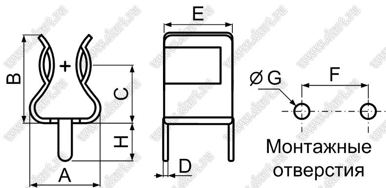 Каталог > Фурнитура для электронных устройств > Держатели предохранителей > Держатели предохранителей (плавких вставок) на плату > Держатели на плату для предохранителей (плавких вставок) 5х20 мм > FUC-03A