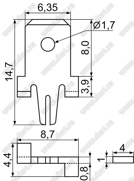 Каталог > Фурнитура для электронных устройств > Терминалы для печатных плат > Терминалы ножевые для пайки в печатную плату > PCK250
