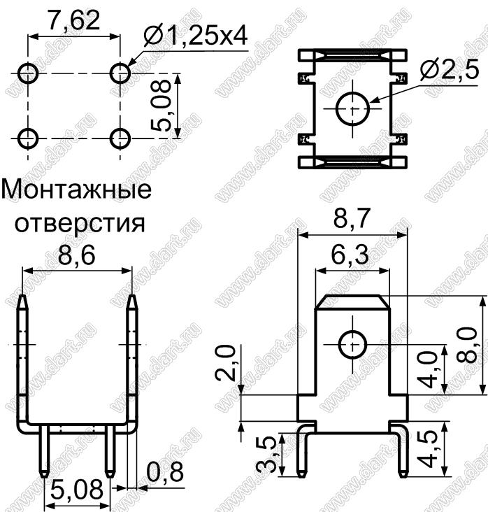 Каталог > Фурнитура для электронных устройств > Терминалы для печатных плат > Терминалы ножевые для пайки в печатную плату > PCU250