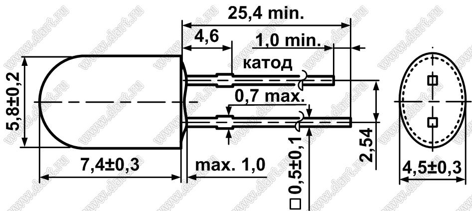 Каталог > Оптоэлектроника и индикация > Светодиоды и изделия на светодиодах > Светодиоды выводные > Светодиоды овальные 5,8x4,5 мм > DB5RH-433AGCA