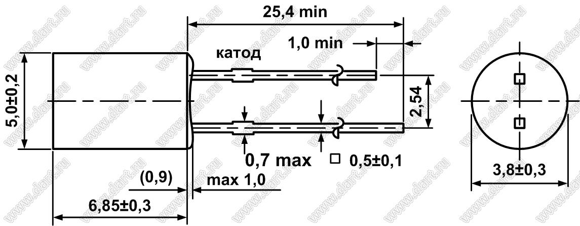 Каталог > Оптоэлектроника и индикация > Светодиоды и изделия на светодиодах > Светодиоды выводные > Светодиоды цилиндрические 5,0x5,3 мм > DC5-133