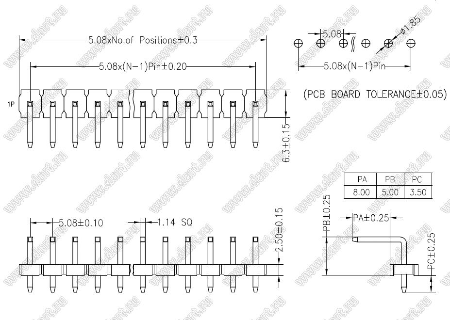 Каталог > Электронные компоненты, радиодетали > Разъёмы (соединители, переходники) > Разъемы плата-плата (межплатные) > шаг 5,08 мм (разъемы межплатные штыревые) > BL1125-11xxR серия > BL1125-1107R