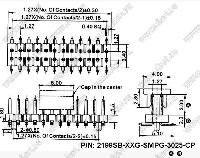 Каталог > Электронные компоненты, радиодетали > Разъёмы (соединители, переходники) > Разъемы плата-плата (межплатные) > шаг 1,27x1,27 мм (разъемы межплатные штыревые и гнезда для них) > двухрядные > 2199SB-XXXG-SM-3025-CP (PLLD1.27S) серия > 2199SB-020G-SMPG-3025-CP