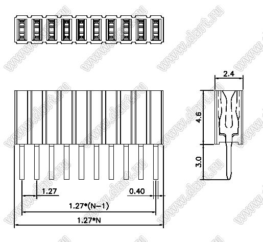 Каталог > Электронные компоненты, радиодетали > Разъёмы (соединители, переходники) > Разъемы плата-плата (межплатные) > шаг 1,27x1,27 мм (разъемы межплатные штыревые и гнезда для них) > однорядные > DS1065-07 серия > DS1065-07-1*35S8BV