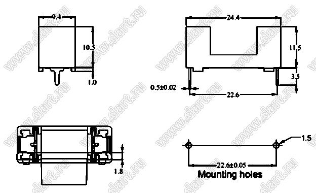 Каталог > Фурнитура для электронных устройств > Держатели предохранителей > Держатели предохранителей (плавких вставок) на плату > Держатели на плату для предохранителей (плавких вставок) 5х20 мм > PTF/78-P22