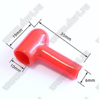Изолятор (чехол) клеммы аккумулятора; D1=6мм; D2=10мм; L=35мм; поливинилхлорид (ПВХ); красный
