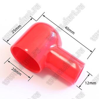 Изолятор (чехол) клеммы аккумулятора; D1=12мм; D2=20мм; L=40мм; поливинилхлорид (ПВХ); красный