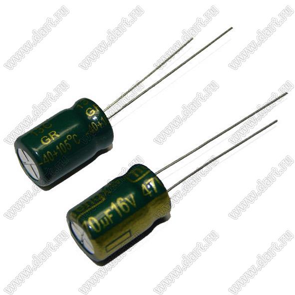 Каталог > Электронные компоненты, радиодетали > Конденсаторы > ECAP - конденсаторы алюминиевые электролитические радиальные > GR/GLR/TN серия > ECAP 470uF/16V 0812 105C GR (GR477M016F12RR0HP0)