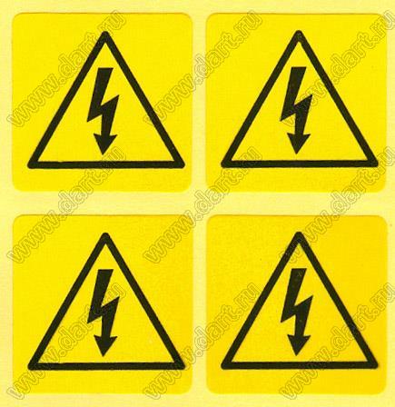 Наклейка бумажная "Опасное напряжение" в треугольнике на листе 20 шт.; H=25мм; L=25мм