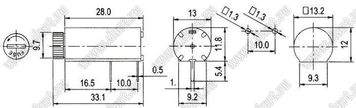 Каталог > Фурнитура для электронных устройств > Держатели предохранителей > Держатели предохранителей (плавких вставок) на плату > Держатели на плату для предохранителей (плавких вставок) 5х20 мм > CQ-206CH (FH-316A)
