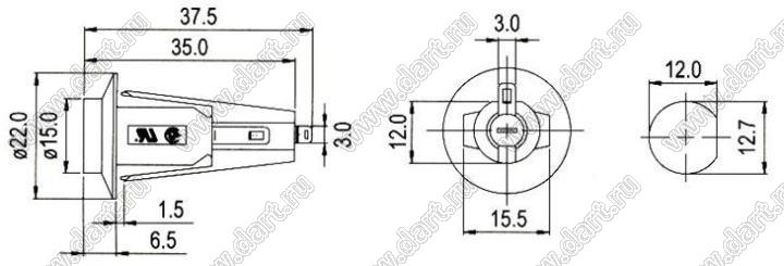 Каталог > Фурнитура для электронных устройств > Держатели предохранителей > Держатели предохранителей (плавких вставок) на панель > Держатели на панель для предохранителей (плавких вставок) 5x20 мм > CQ-206F (FH-307)