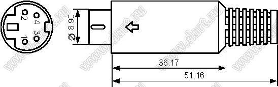 Каталог > Электронные компоненты, радиодетали > Разъёмы (соединители, переходники) > Разъемы DIN (мини) > Вилки мини-DIN на кабель > 1200P-04A