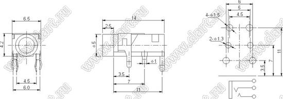 Каталог > Электронные компоненты, радиодетали > Разъёмы (соединители, переходники) > Разъемы аудио-видео > Прочее > PJ-321(B) (SJ-3504, CKX-3.5-04B)