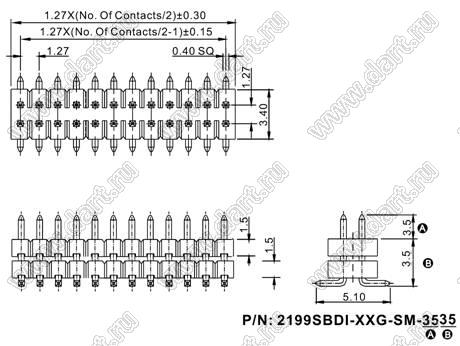 Каталог > Электронные компоненты, радиодетали > Разъёмы (соединители, переходники) > Разъемы плата-плата (межплатные) > шаг 1,27x1,27 мм (разъемы межплатные штыревые и гнезда для них) > двухрядные > 2199SBDI-XXXG-SM (PLLHD1.27S) серия > 2199SBDI-100G-SM-3535