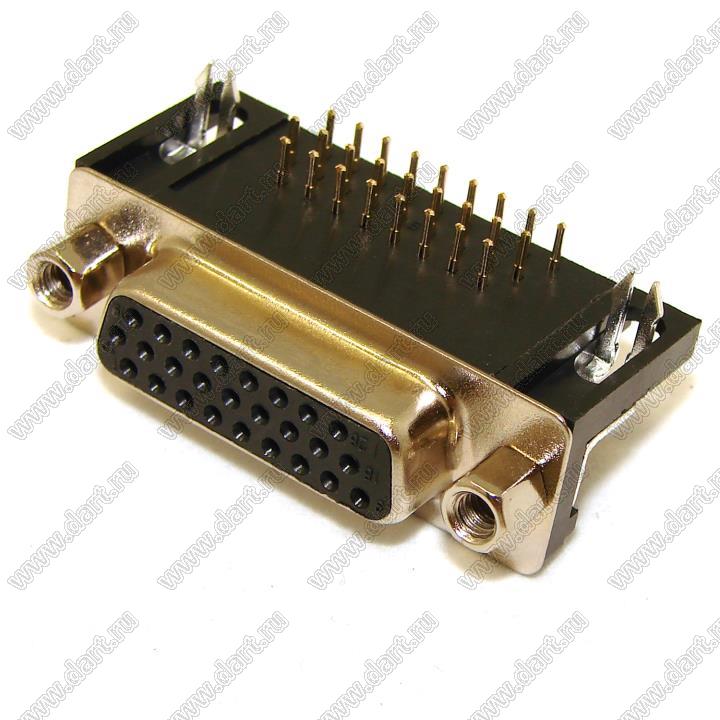Каталог > Электронные компоненты, радиодетали > Разъёмы (соединители, переходники) > Разъемы D-SUB > DS1038-xxX (5510-xxX, DHR-xxX) серия: вилки и розетки D-SUB угловые «высокой плотности» для пайки в плату > DS1038-26FB0N-C (5510-26SA-02A, DHR-26FC)