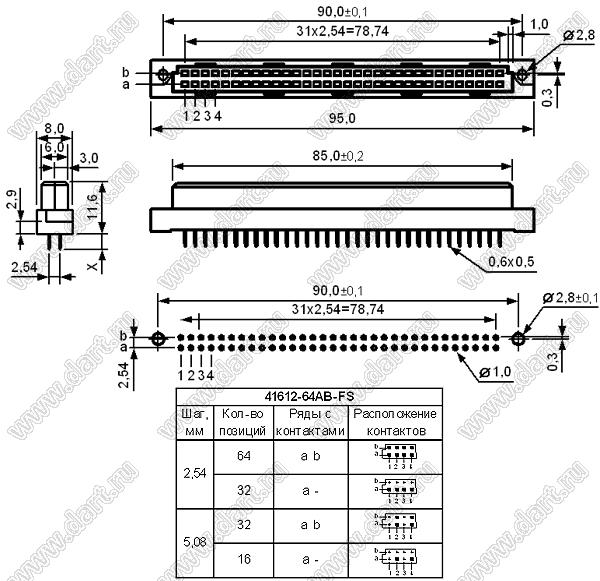 Каталог > Электронные компоненты, радиодетали > Разъёмы (соединители, переходники) > Соединители межплатные DIN 41612 > DIN 41612 розетки прямые > 9001-32 серия > 9001-32641C00A (DIN 41612-64AB-FS)