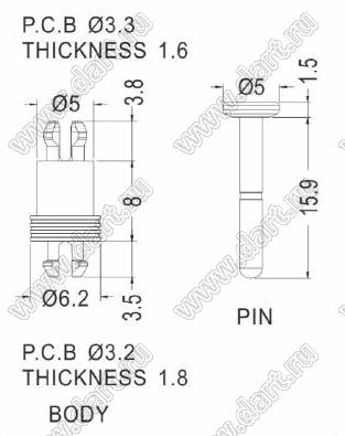 Каталог > Фурнитура для электронных устройств > Фиксаторы плат, стойки межплатные > Фиксаторы под круглое отверстие > Фиксаторы с двумя защелками > MSPB, MSPCA3.3 серии > MSPB-8L