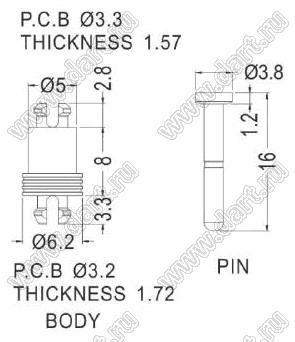 Каталог > Фурнитура для электронных устройств > Фиксаторы плат, стойки межплатные > Фиксаторы под круглое отверстие > Фиксаторы с двумя защелками > MSPB, MSPCA3.3 серии > MSPB-8