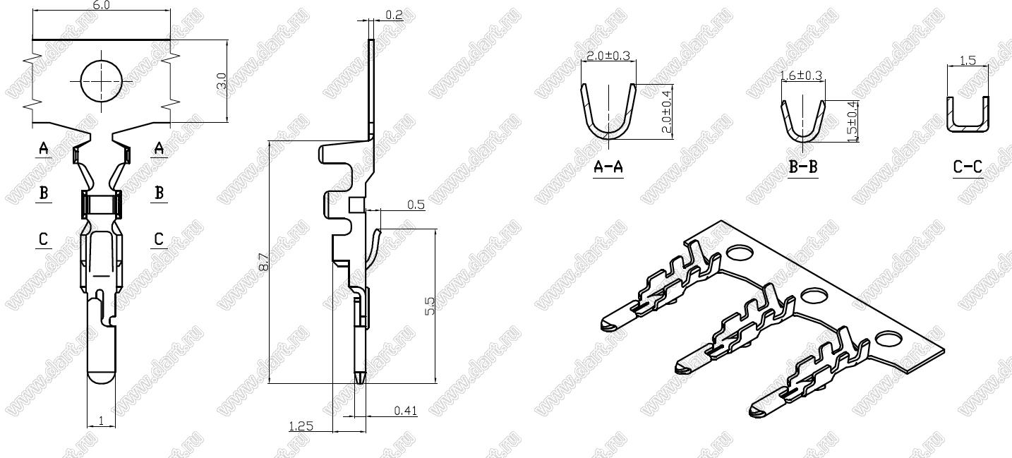 Каталог > Электронные компоненты, радиодетали > Разъёмы (соединители, переходники) > Разъемы кабель-кабель > Шаг 2,0 мм > C2001 серия > C2001-TP2