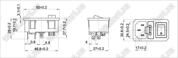 Каталог > Электронные компоненты, радиодетали > Разъёмы (соединители, переходники) > Разъемы AC (разъемы сетевого питания) > Трехполюсные разъемы сетевого питания > IEC 60320 C13/C14 > SP-862B1+KCD1-104B-201N11RBA (MIRS-201A-2C3-R)-1.0