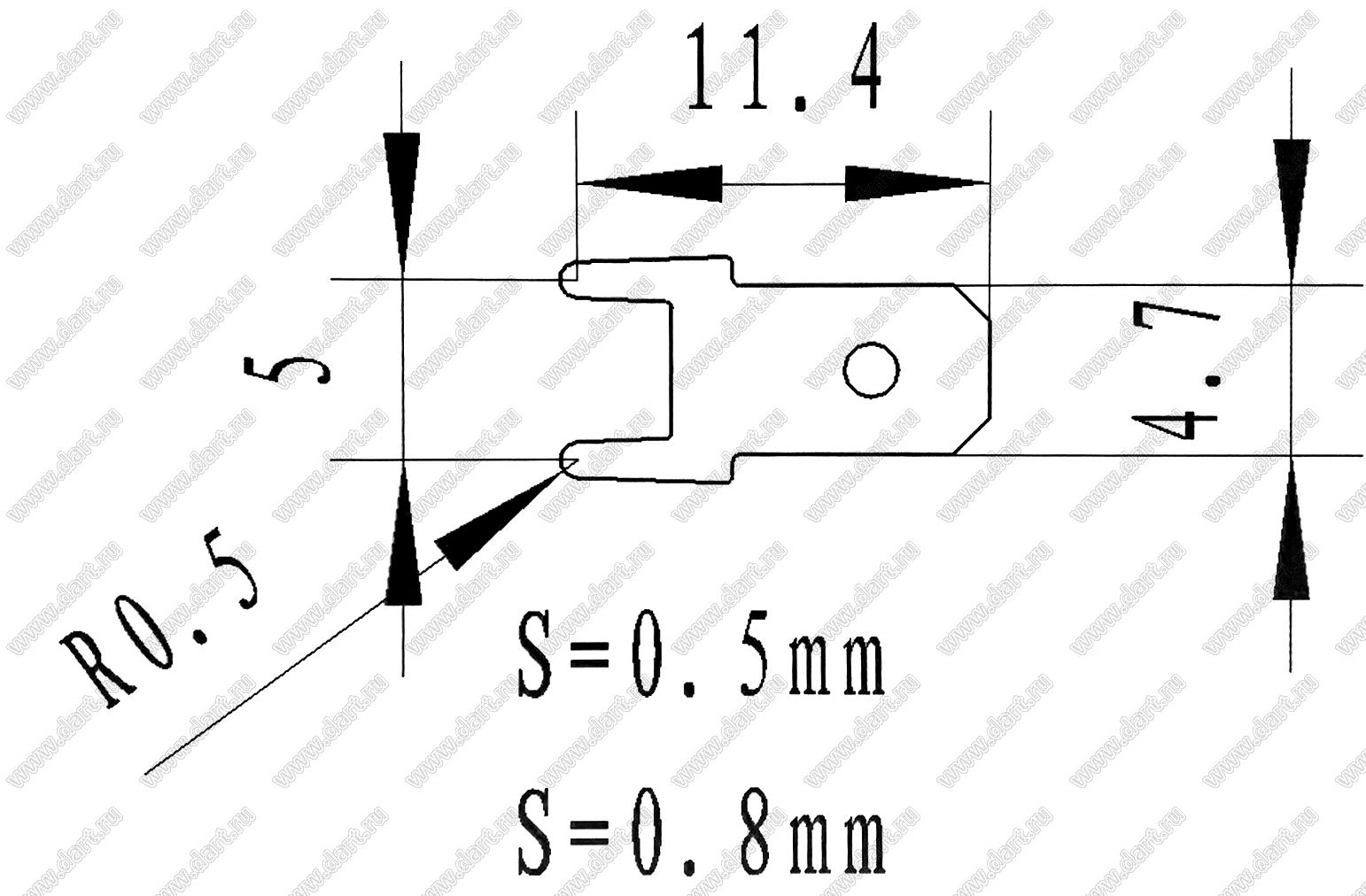 Терминал ножевой 4,8 мм (0,187”) прямой для пайки в печатную плату, луженая латунь 0,8мм; латунь луженая; 0,8мм
