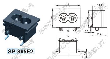 Каталог > Электронные компоненты, радиодетали > Разъёмы (соединители, переходники) > Разъемы AC (разъемы сетевого питания) > Двухполюсные разъемы сетевого питания > IEC 60320 C7/C8 > SP-865E2 (R-201A(03), AC-05)