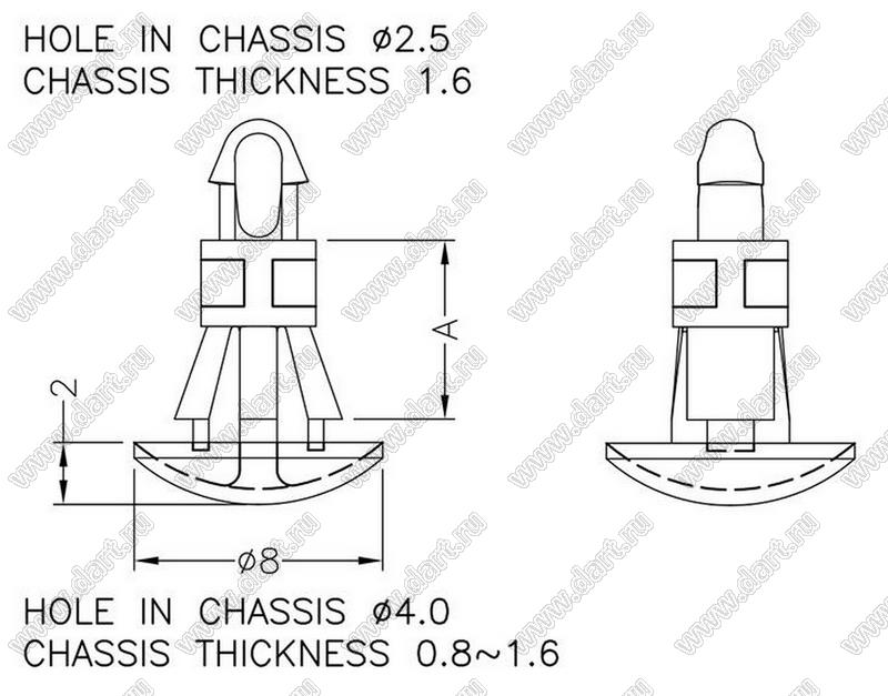 Каталог > Фурнитура для электронных устройств > Фиксаторы плат, стойки межплатные > Фиксаторы под круглое отверстие > Фиксаторы с двумя защелками > RCAС серия > RCAC-16