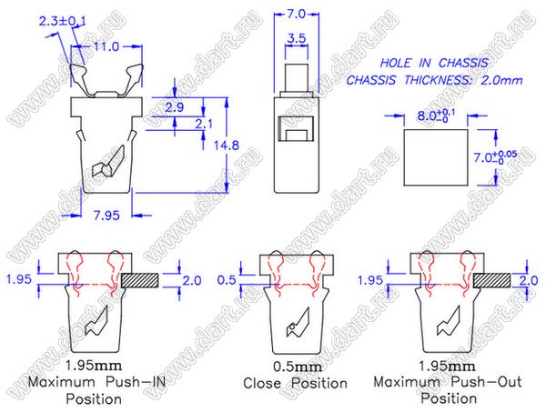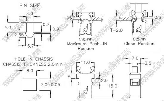 Каталог > Фурнитура для электронных устройств > Защелки дверец > Пластиковые защёлки > PGDL-150F