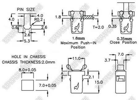 пластиковый фиксатор; нейлон-66 (UL), PC(UL); черный, серый