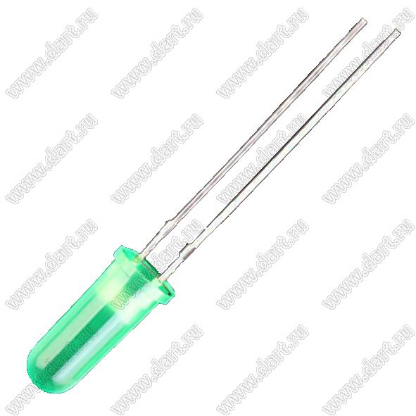 Светодиод круглый 5,0x14,5 мм; зеленый; 495...535нм; корпус прозрачный; 2,9...3,5V; 1000...2000мКд; 30°