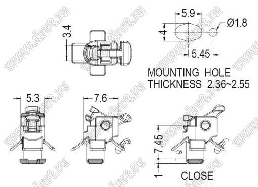 Фиксатор платы; нейлон-66 (UL); черный