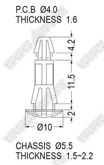 Каталог > Фурнитура для электронных устройств > Фиксаторы плат, стойки межплатные > Фиксаторы под круглое отверстие > Фиксаторы с двумя защелками > RCB серия > RCB-11.5