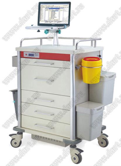 терминал медицинский для инструментов,столешница,пять выдвижных ящиков,кронштейн для монитора,полка для ноутбука; габариты 66x50x85,5мм