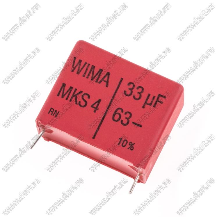 Каталог > Электронные компоненты, радиодетали > Конденсаторы > Конденсаторы плёночные фирмы "WIMA" > MKS4 > MKS4 33мкФ; 63В; 10%; PCM=27,5мм