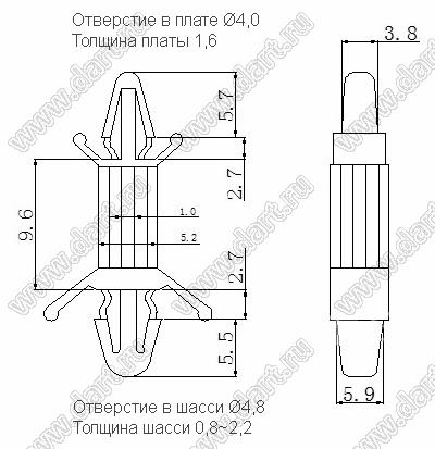 Каталог > Фурнитура для электронных устройств > Фиксаторы плат, стойки межплатные > Фиксаторы под круглое отверстие > Фиксаторы с двумя защелками > CBS серия > CS-0610