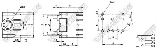 Каталог > Электронные компоненты, радиодетали > Разъёмы (соединители, переходники) > Разъемы аудио-видео > Аудио разъемы 3,5 мм > PJ-307B (ST-222, CKX-3.5-24)