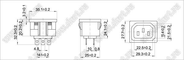 Каталог > Электронные компоненты, радиодетали > Разъёмы (соединители, переходники) > Разъемы AC (разъемы сетевого питания) > Трехполюсные разъемы сетевого питания > IEC 60320 C13/C14 > SP-864C1 (R-302SN, AS-02-1)