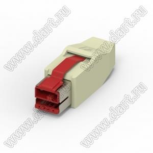 USB с питанием, штекер для кабеля; Uном=24В (секция питания); золочение 10мкм; красный