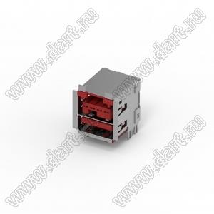 USB с питанием, розетка; Uном=24В (секция питания); золочение 30мкм; красный