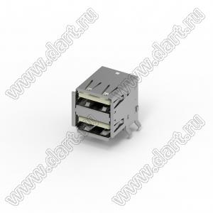 Сдвоенные розетки USB 2.0, тип A, прямоугольный, DIP, GF