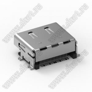 Разъем HDMI, розетка, тип A, прямоугольный, SMT, с креплением, 15u"