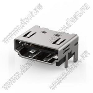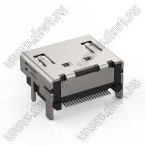 Разъем HDMI 2.1, тип A, SMT+Shell DIP, без изгиба, без штифта, 15u"