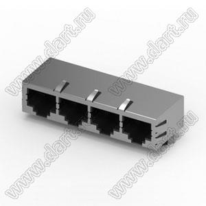 Разъем RJ45 магнитный, 1х4, угловой, верхняя защелка, DIP, экранированный, без светодиода, 5u"