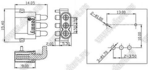 Материал изолятора: полиэстр (UL94V-0), PA9T/LCP