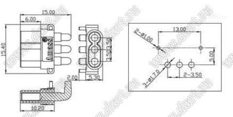 вилка на плату угловая; 3-конт.